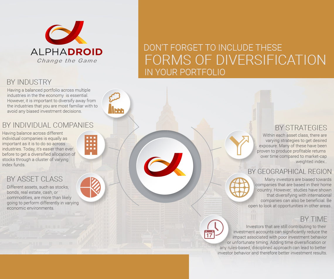 Including these forms of diversification in your investment portfolio can certainly help investors and advisors reap the benefits and be more likely to attain profitable returns and avoid risks. However, diversification does not entirely protect portfolios from risk. Due to the various sources of risk to face related to companies, markets, funds, strategies, and other events and matters, a single act of diversification will not eliminate all factors of risk. However, there is a way to reduce portfolio risk even more than diversification can, and that way is AlphaDroid. AlphaDroid is an elite investment portfolio management software that allows investors to analyze, construct, and compare various investment portfolios. The AlphaDroid portfolio management software was designed to reduce risk on a variety of levels. Want to experience the power of AlphaDroid first-hand? Try a free trial of our elite investment portfolio software investment portfolio software today!